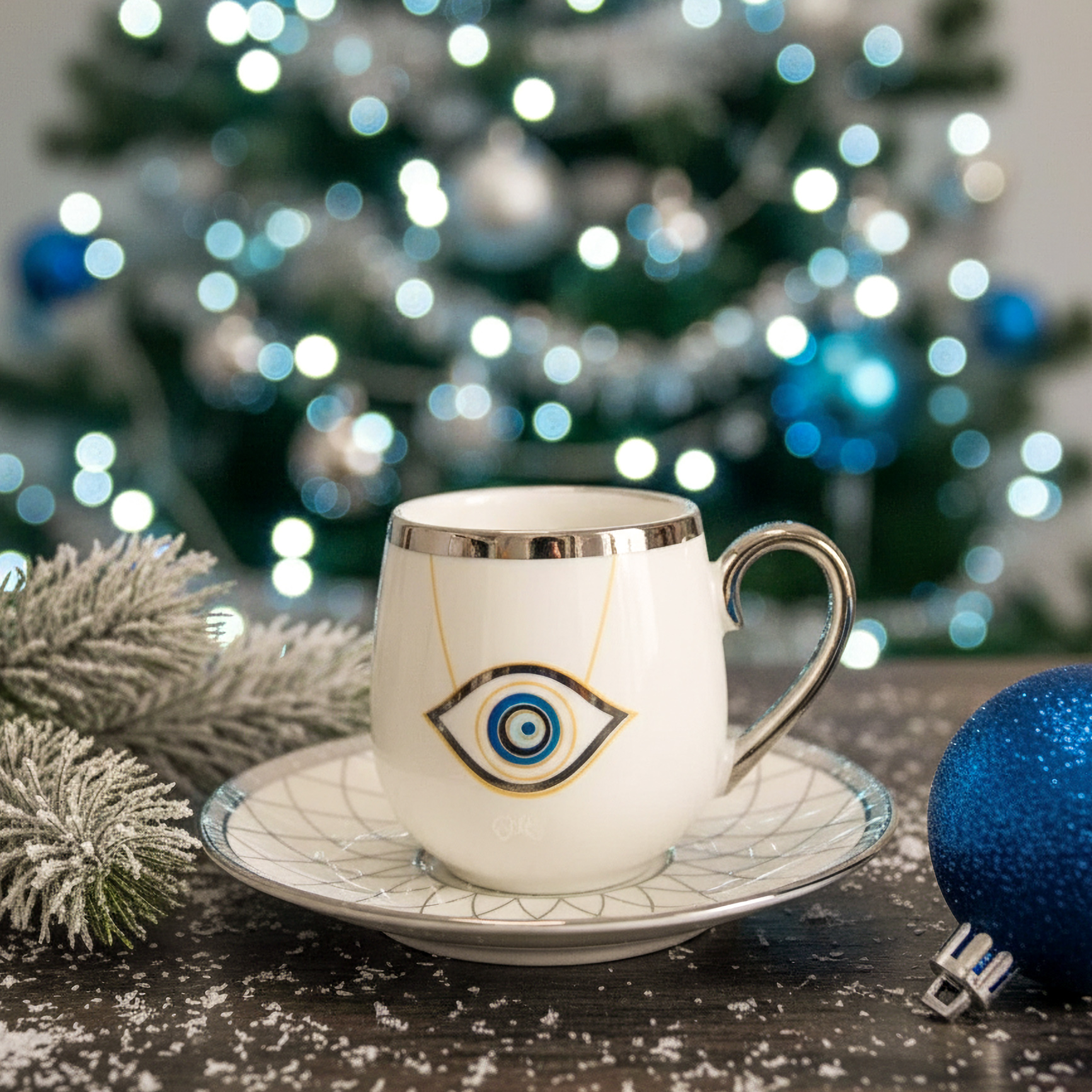 Filiżanka o pojemności 60 ml doskonale nadaje się do serwowania aromatycznej kawy. Jej orientalny wzór z motywem oka proroka – talizmanu chroniącego przed złym okiem – przyciąga wzrok i dodaje magii każdemu spotkaniu przy kawie.