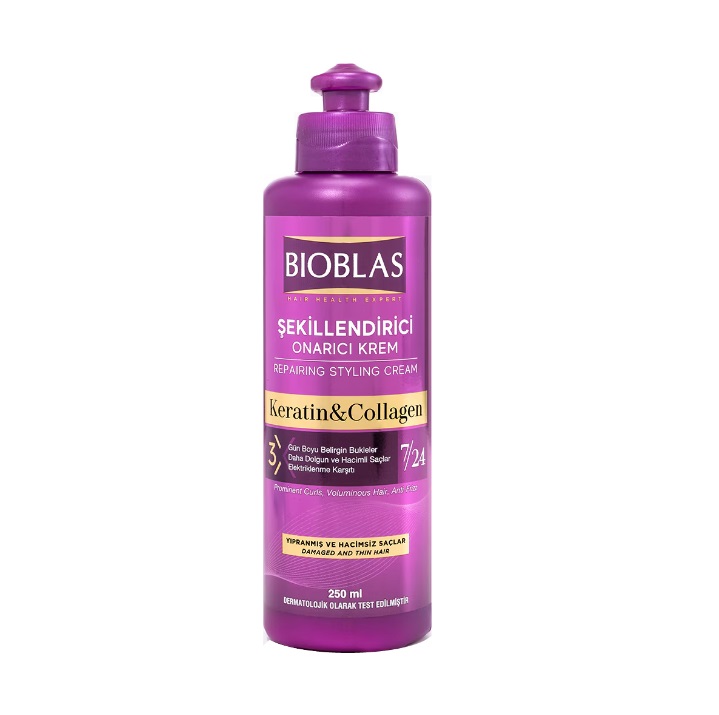 Bioblas regenerujący krem do stylizacji włosów, stworzony z myślą o włosach zniszczonych, cienkich i pozbawionych objętości. Lekka formuła ułatwia modelowanie fryzury, jednocześnie pielęgnując włosy i poprawiając ich kondycję. Produkt pomaga podkreślić naturalne fale i loki, nadaje włosom objętość oraz chroni je przed puszeniem i elektryzowaniem się.