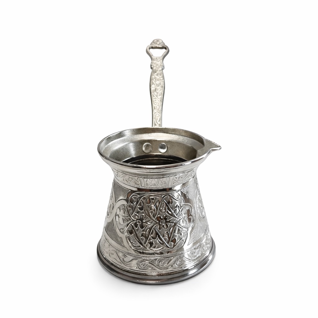 Dzięki pojemności 200 ml, cezve idealnie nadaje się do przygotowania 1–3 filiżanek aromatycznej, gęstej kawy tureckiej. Długi, ozdobny uchwyt chroni przed poparzeniem i zapewnia wygodę podczas nalewania napoju. Wyprofilowany dziubek umożliwia precyzyjne wylewanie kawy bez rozchlapywania.