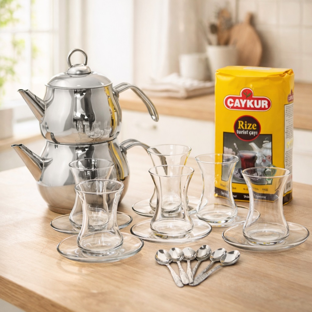 Tradycyjna herbata po turecku zaparzana jest w tzw „demli” (dwupoziomowe naczynie). Do mniejszego czajniczka wsypujemy herbatę liściastą, do dolnego większego czajniczka, wlewamy zimną wodę. Kładziemy mały imbryk na większym i stawiamy demli na kuchenkę, kiedy woda się zagotuje zalewamy liście herbaty, a ubytek wody w dolnym czajniczku uzupełniamy. Napar zaparzamy ok. 20 minut. Do małej szklaneczki tzw. tulipanka wlewamy czaj z górnego imbryka i uzupełniamy wrzątkiem. W Turcji herbatę podajemy z 1-2 kostkami cukru.