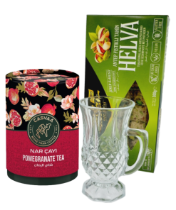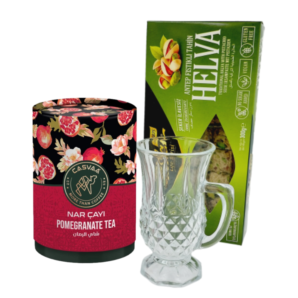 W te święta podaruj bliskim odrobinę luksusu i smaku Orientu! Zestaw prezentowy Sułtanki to wyjątkowy upominek, który zachwyci każdego miłośnika tureckich tradycji. Elegancka szklanka z kryształowym zdobieniem, aromatyczna herbata i słodka chałwa – wszystko, czego potrzeba, by przenieść się w magiczny świat sułtanów!