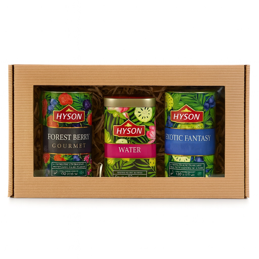Jeśli chcesz, by herbaty były gotowe do wręczenia, możesz dokupić pudełko prezentowe z ekologicznym wypełnieniem (naturalne sianko). Wystarczy ułożyć w nim puszki – i prezent gotowy!